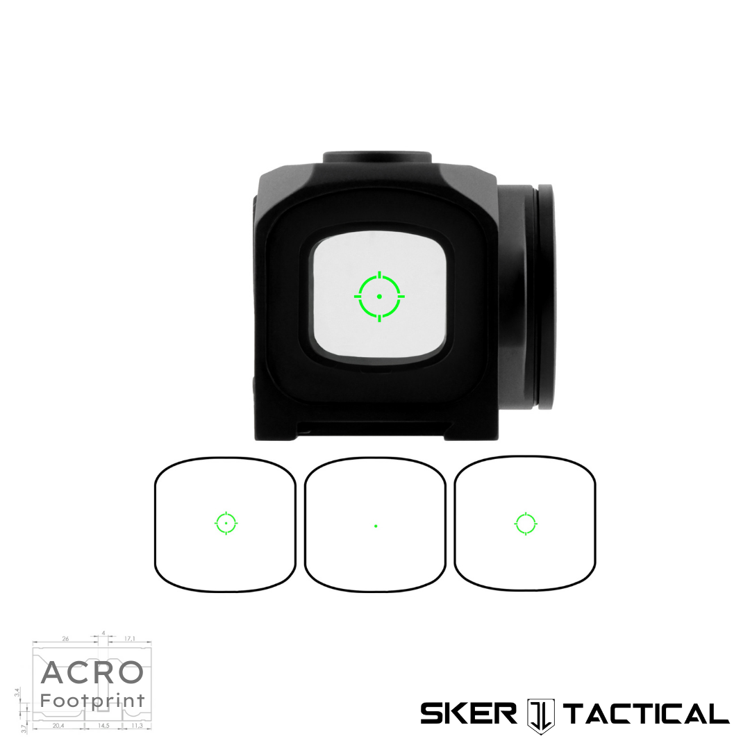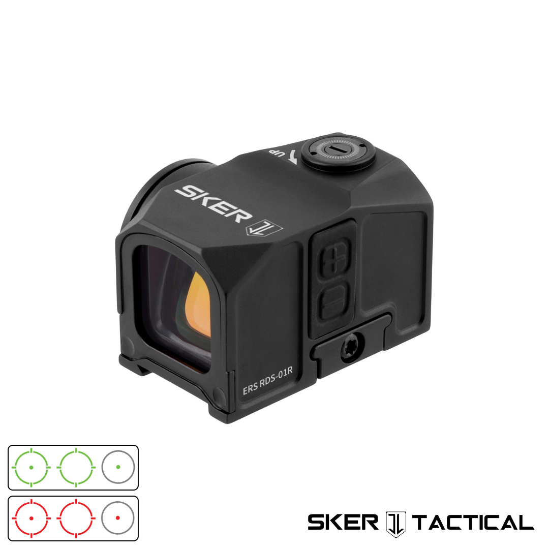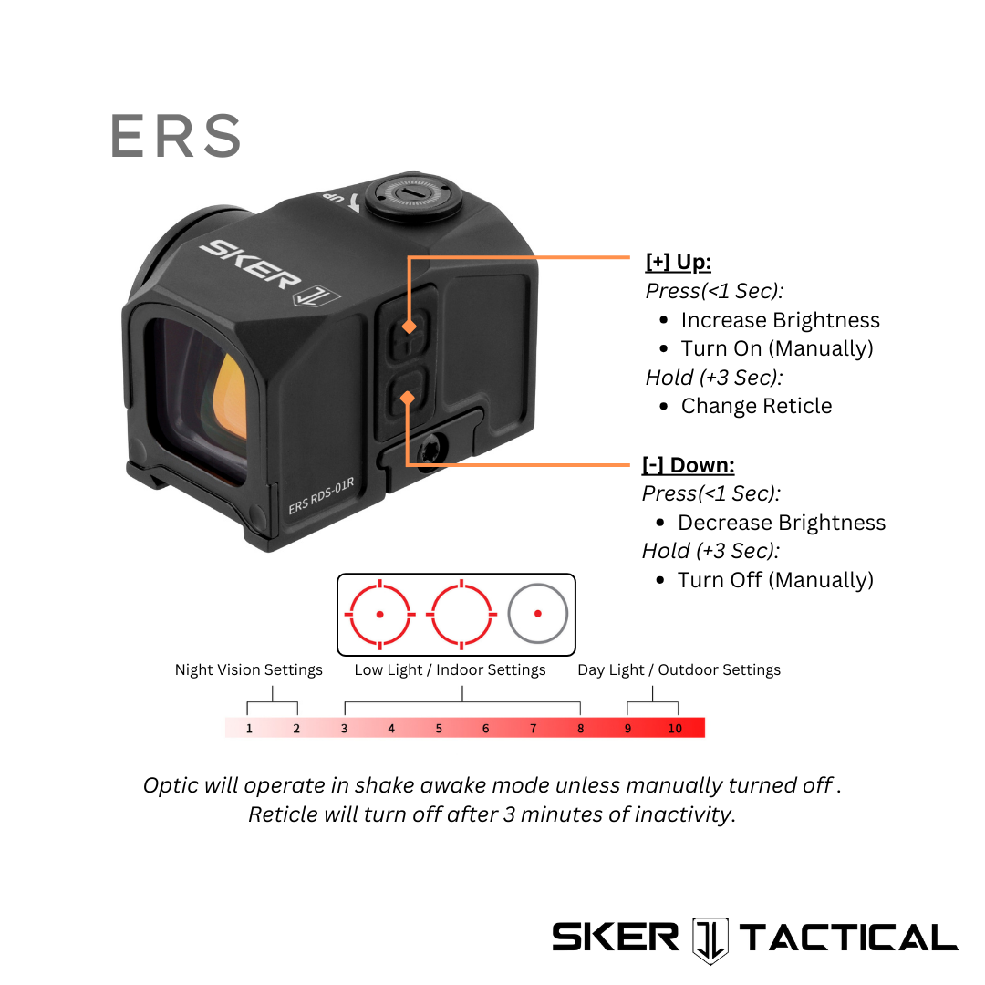 This ERS – Enclosed Reflex Sight is an ACRO footprint optic applicable across all modern firearm platforms. It features a 3 reticle system, 10 brightness settings, tactile windage and elevation adjustments, and shake awake motion sensing. This optic can withstand 1500G’s of recoil force, is IP67 water proof rated, and has a battery life up to 50,000 hours. Included in the box is a picatinny riser, low picatinny mount, cleaning cloth, installation tools, and a CR2032 battery. Pressing the [+] button for 3 seconds will cycle through the 3 reticles – 3 MOA Dot, 30 MOA Circle, and Dot + Circle. When left untouched for 3+ minutes the optic will temporarily power off until being motion activated again. To manually turn the optic off pressing the [-] button for 3 seconds will power it off. This ERS optic is extremely versatile. It can mount to both pistols and rifles and is compatible with all 1913 Picatinny Rails.
