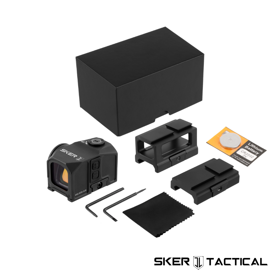 Parts Included: ERS Optic, Picatinny Riser, Picatinny Mount, Cleaning Cloth, Installation Tools, CR2032 Battery