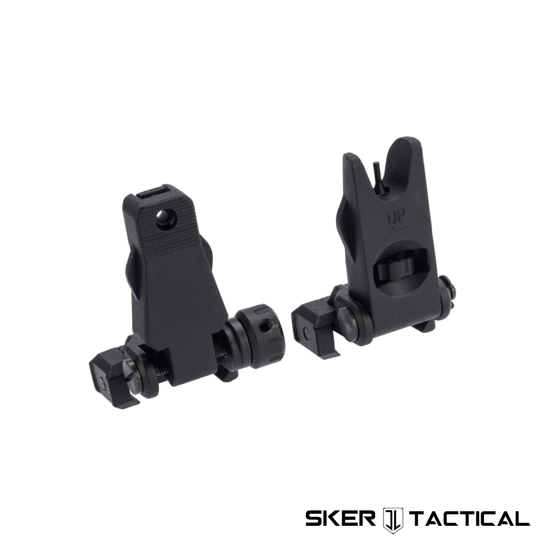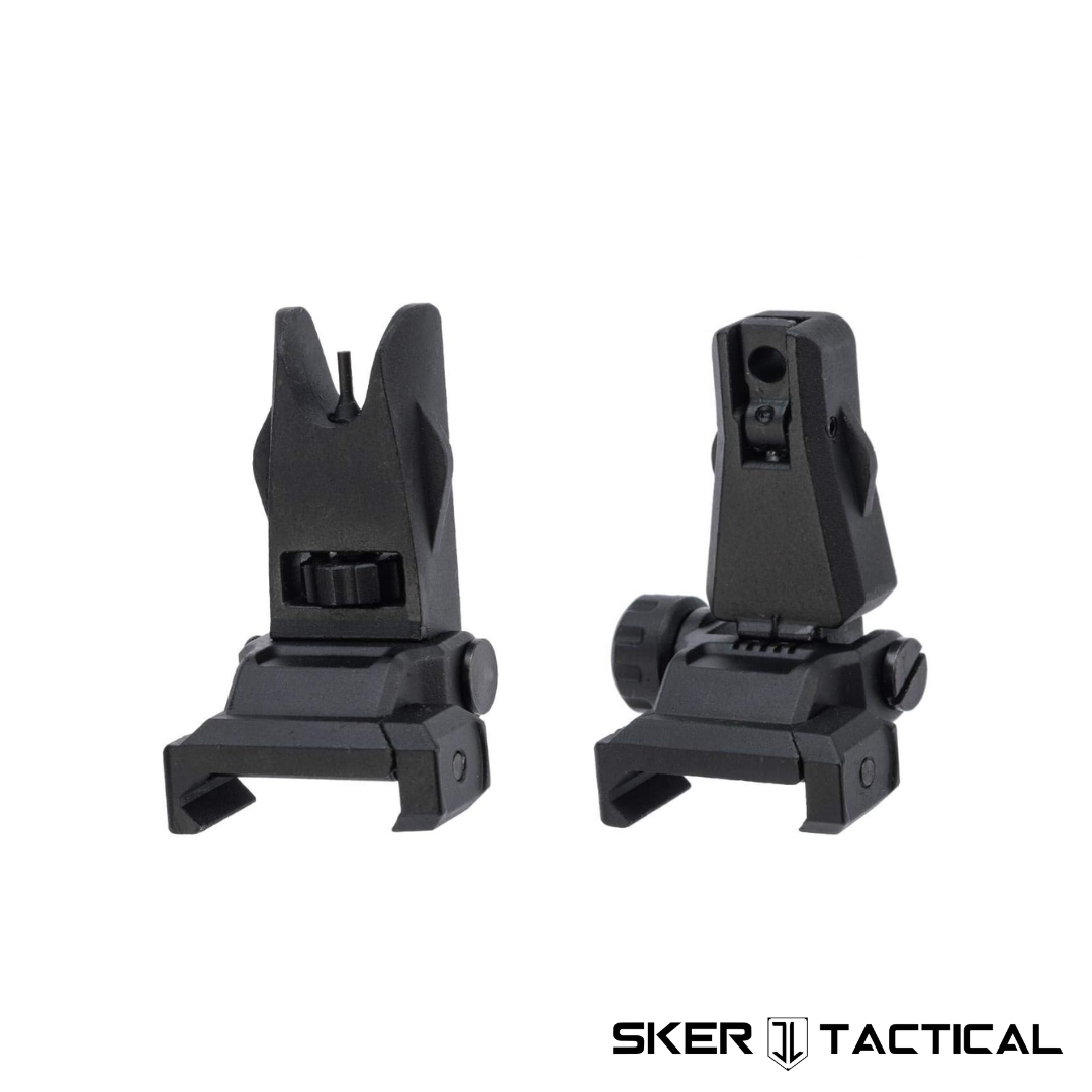 This MOD 2 Flip Up Sight Set is applicable across all modern firearm platforms. These flip up iron sights provide the operator with a back up sighting solution in the event an optic goes down. The sight set is of metal construction, mounts directly to any standard picatinny rail, and is extremely low profile, with each sight measuring only 11mm high when in the stowed position. This extreme low profile design allows most co-mounted laser devices to operate without any obstructions. When flipped up or down, the sights click into position via an internal detent system. This system avoids extra buttons or external locking mechanisms, allowing the operator to quickly and easily engage or stow the sights when needed. The MOD 2 set has winged tabs to easily operate the sights and the rear sight comes with a dual aperture. The sights also feature tool-less windage and elevation adjustment knobs so the operator can easily adjust the sights as needed.