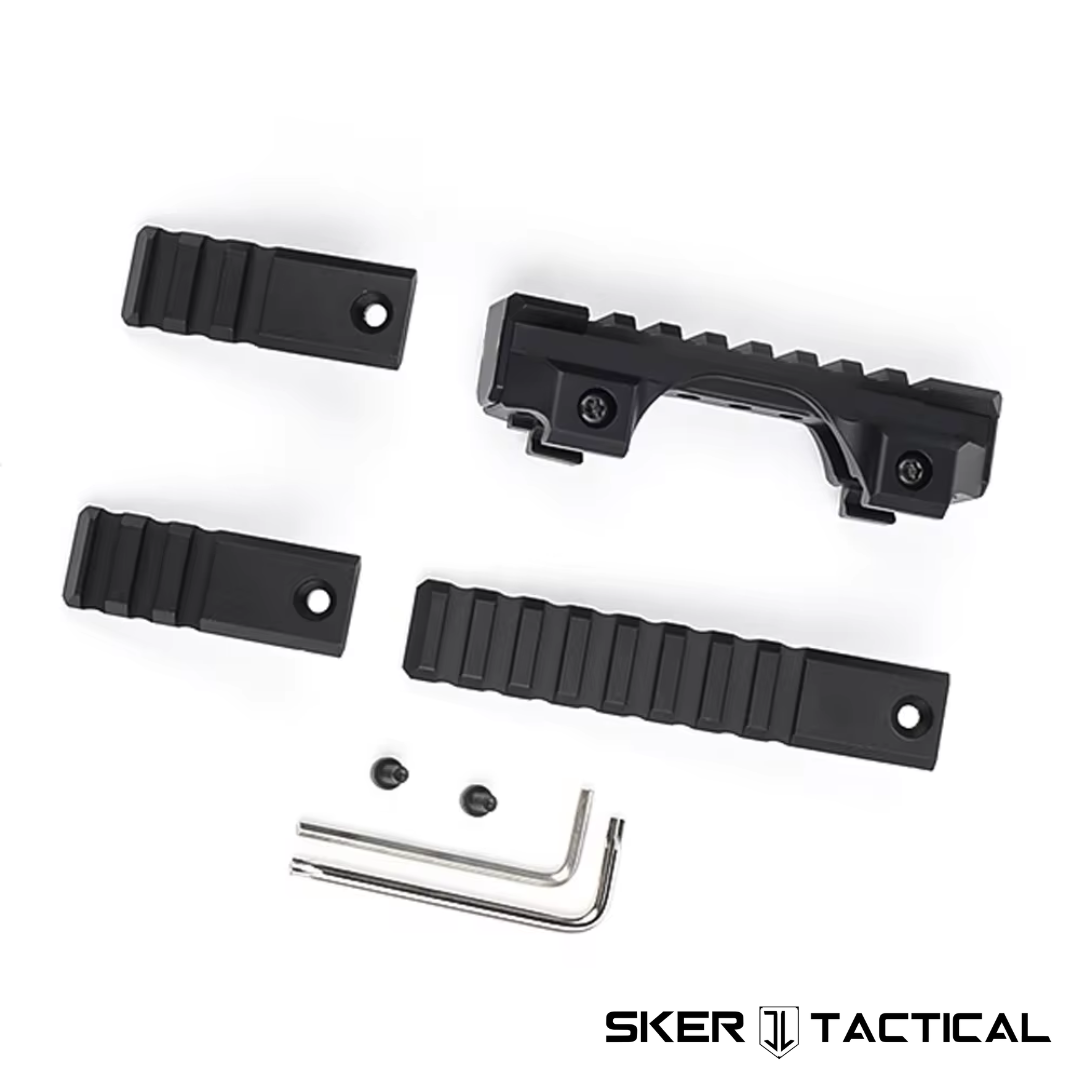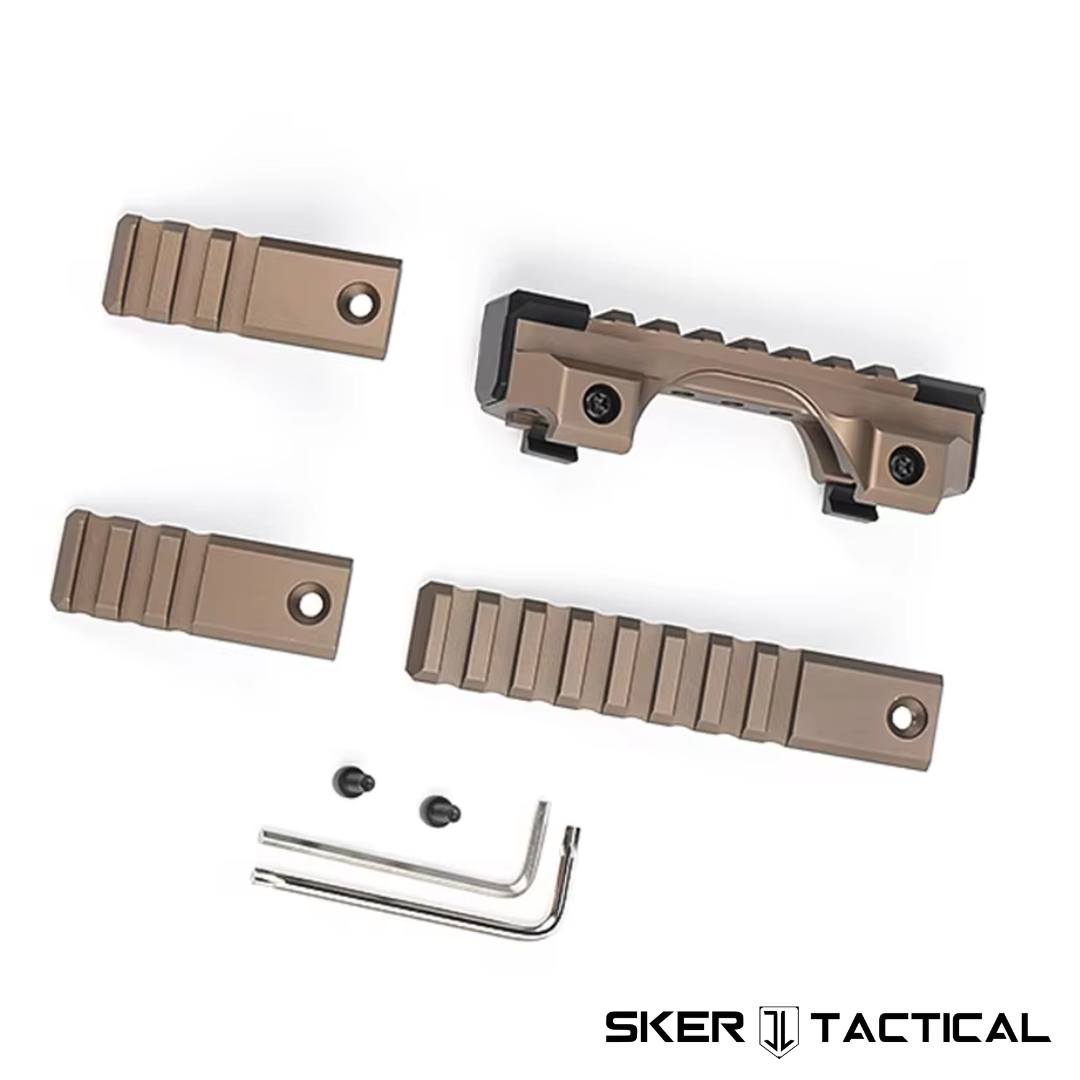This Modular Optic Riser Mount is applicable across all modern firearm platforms. This riser includes the 8 picatinny slot riser base, 2x end plates, 2x 3 slot rail extensions, and 1x 8 picatinny slot diving board. The modular base and various extension pieces allow the operator to build out a versatile riser that is custom tailored to their firearm and optics setup. The riser can be used as a stand alone mount or it can be paired with the included extensions to accommodate for attachments like magnifiers, lasers, and clip on imagers. Elevating your optics is especially useful when implementing night vision, gas masks, or any other equipment that obstructs and hinders mobility. The heightened sightline provides the operator with faster target acquisition and better ergonomics. Additionally the cantilever diving board design allows the operator to mount optics further forward past the upper receiver without attaching them directly to the handguard. This modular optic riser is an ideal mounting solution for a variety of optics and other accessories.