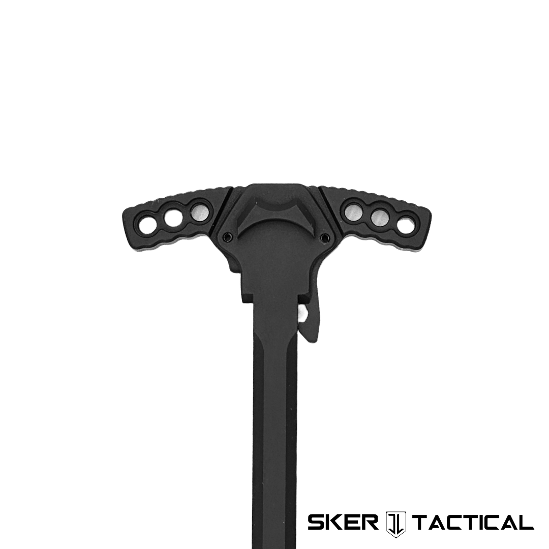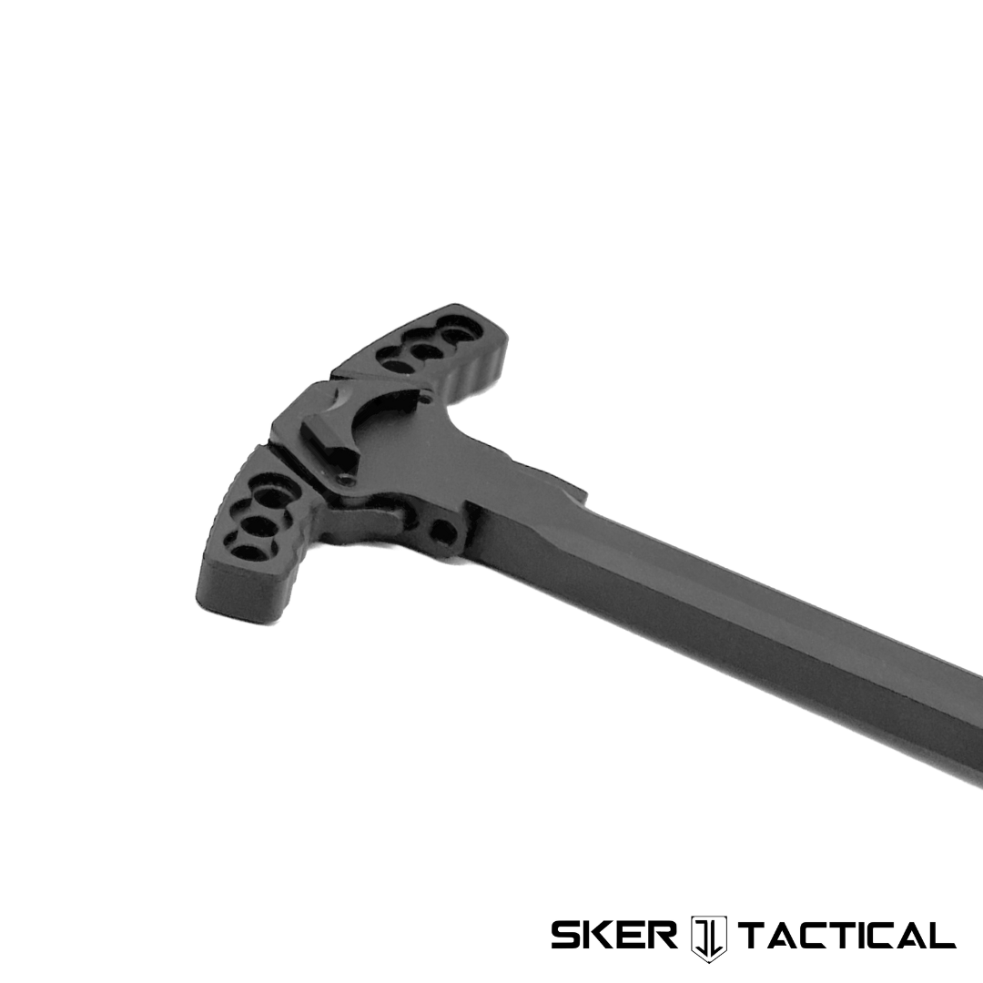 This Ported Ambidextrous Charging Handle is compatible with all AR-15 Upper Receivers. It features a modernized design and extended latches on either side which allows for both easier and faster charging. The stalk of the charging handle also features a right side gas port. This port vents the AR-15’s gas, oil, dirt, and debris to the side and away from the operator’s face during firing. This port significantly redirects and reduces the amount of gas blown back into the shooter’s face and eyes, creating a more comfortable and enjoyable shooting experience, especially when using a suppressor. The oversized release levers on both sides ensure swift and effortless operation, providing ambidextrous functionality for both right and left-handed shooters. The handle is precision machined from 6065-T6 aluminum and Type III hard-coat anodized for increased durability. The handle is anodized black, making this charging handle extremely high quality, durable, and corrosion resistant. The handle has an aggressive yet refined design, and is highly improved over mil-spec charging handles. This charging handle is easy to install and is a great base component for new builds or upgrading your existing AR-15.