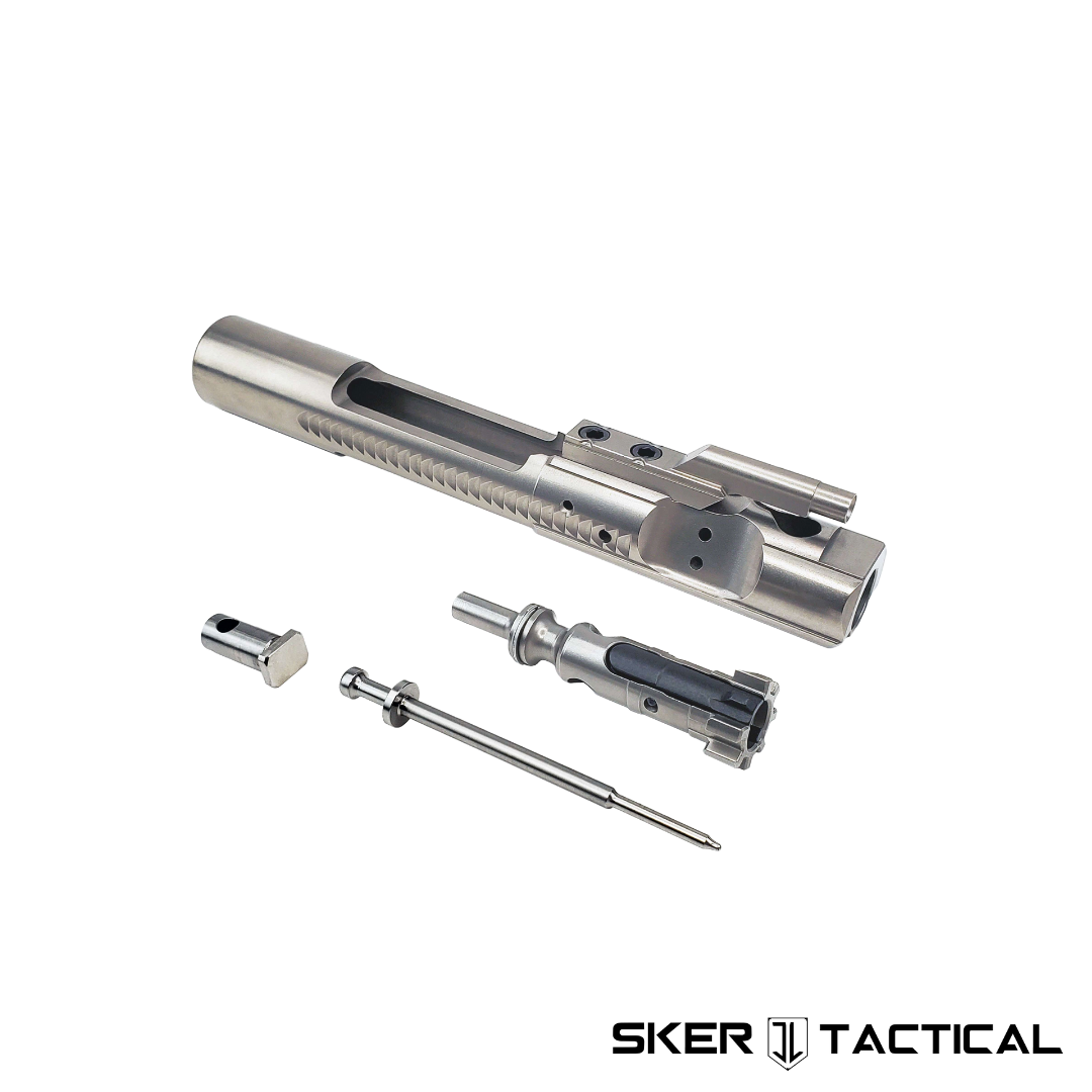 This Standard Bolt Carrier Group is compatible with AR-15 Upper Receivers. This Standard BCG line comes in TiN [Titanium Nitride (Gold)], NiB [Nickel Boron (Silver)], and Black Nitride. These BCG’s are drop-in ready, standard weight, and a high-quality component that is precision machined to perform for tens of thousands of rounds and provide reliable and consistent performance. The outside dimensions and ALL three interior dimensions of our carrier are grinded and smoothed, giving our BCGs a near friction-less surface finish. To ensure long-term reliability and corrosion resistance, coatings are done by industry-leading finishers H&M for their Blacknitride+â„¢ and WMD for their NiB-X finish. These deliver the utmost durability and improved lubricity for our premium Standard M16 Cut BCG. These BCG’s are a high quality standard Mil-spec component for any AR-15.